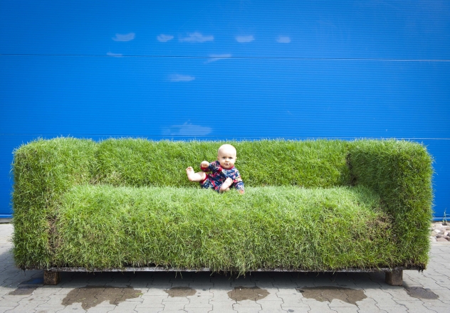 Do tej zielonej reklamy wykorzystujemy trawę w różnych formach; wycinamy, siejemy, kosimy...