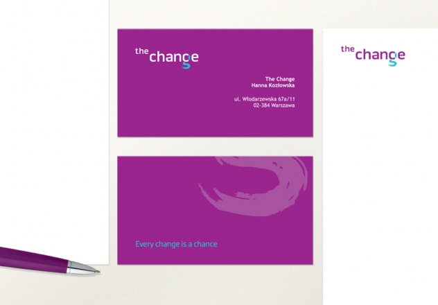 Kreacja i projekt identyfikacji firmy The Change, zajmującej się komunikacją zmian w korporacjach międzynarodowych.